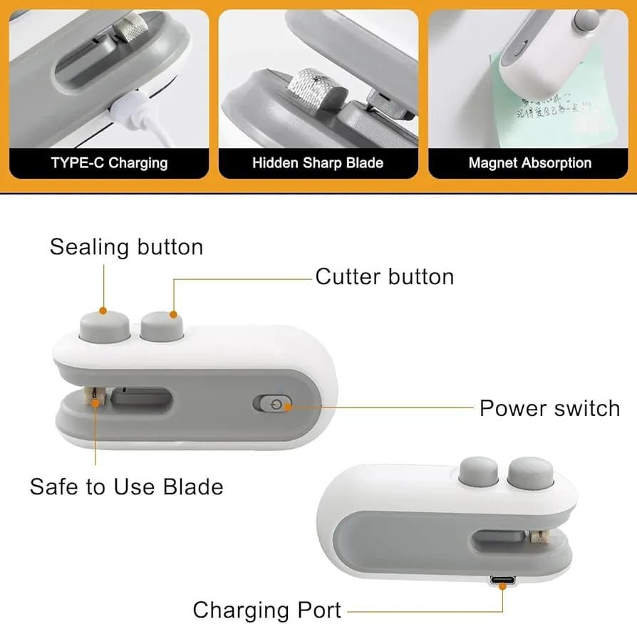 Perfect for sealing chips packets, snack bags, plastic food bags, and other packaging.